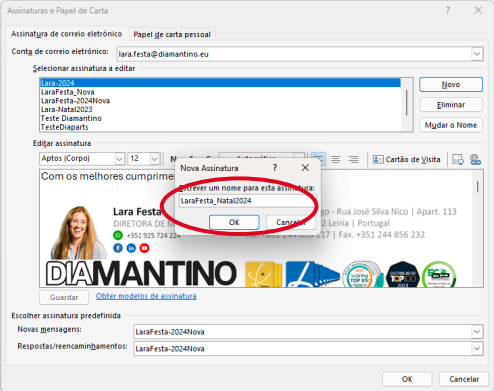 6. Dar um nome à assinatura: “NomeColaborador_Natal2024